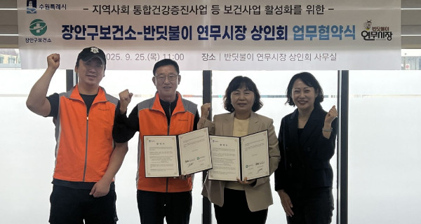 협약에 따라 장안구보건소는 반딧불이 연무시장에서 만성질환 기본검사(혈압·혈당·콜레스테롤·체성분)와 결과 상담을 제공한다. 또 건강증진 교실을 비롯해 상인회가 진행하는 캠페인 운영 등을 지원한다.