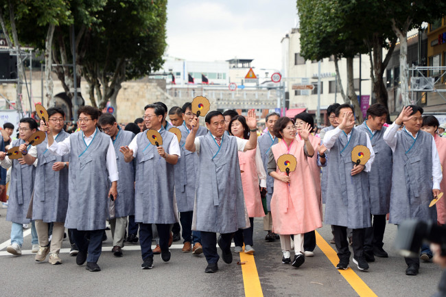특히, 이재식 의장을 포함한 수원특례시의회 의원들은 전통 한복 ‘쾌자’를 입고 시민들과 어깨를 나란히 하며 행렬에 동참하여 축제의 흥을 더했다.